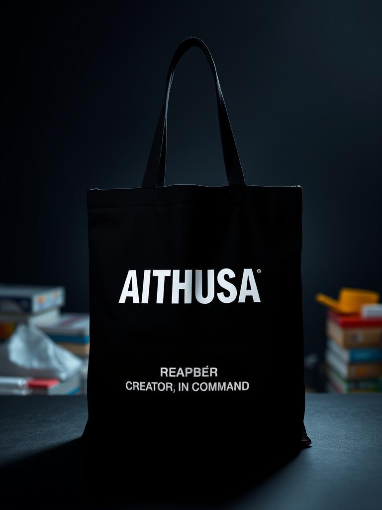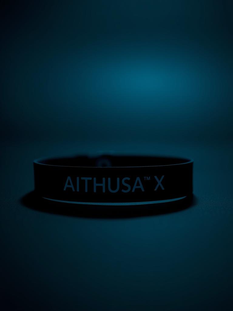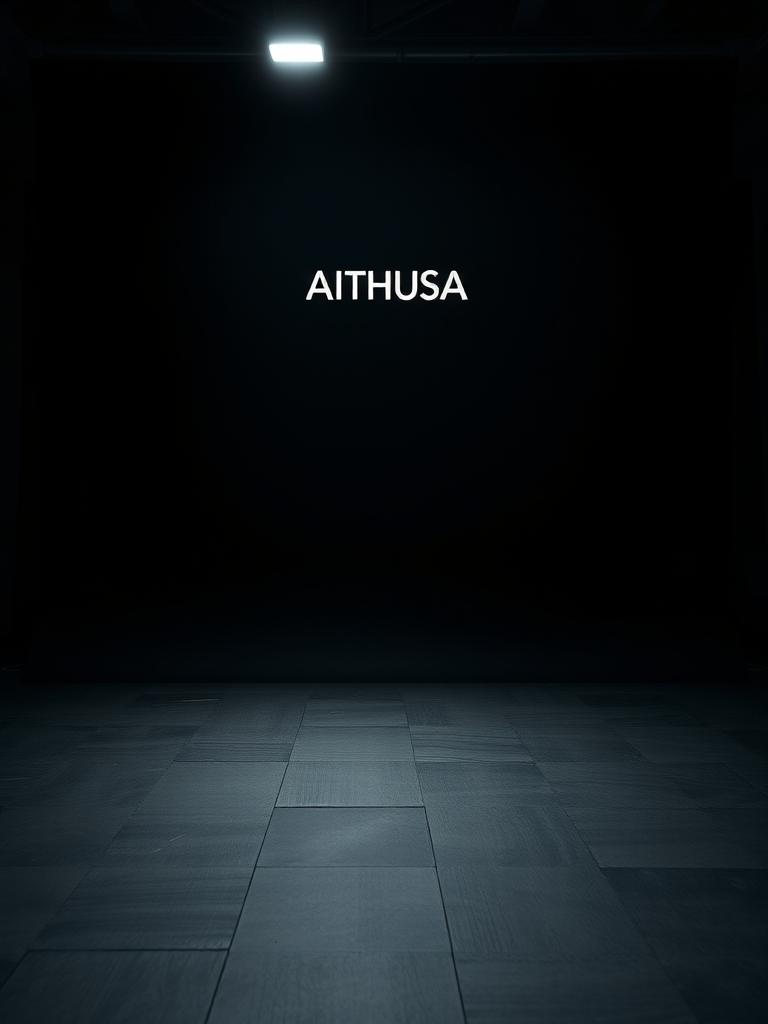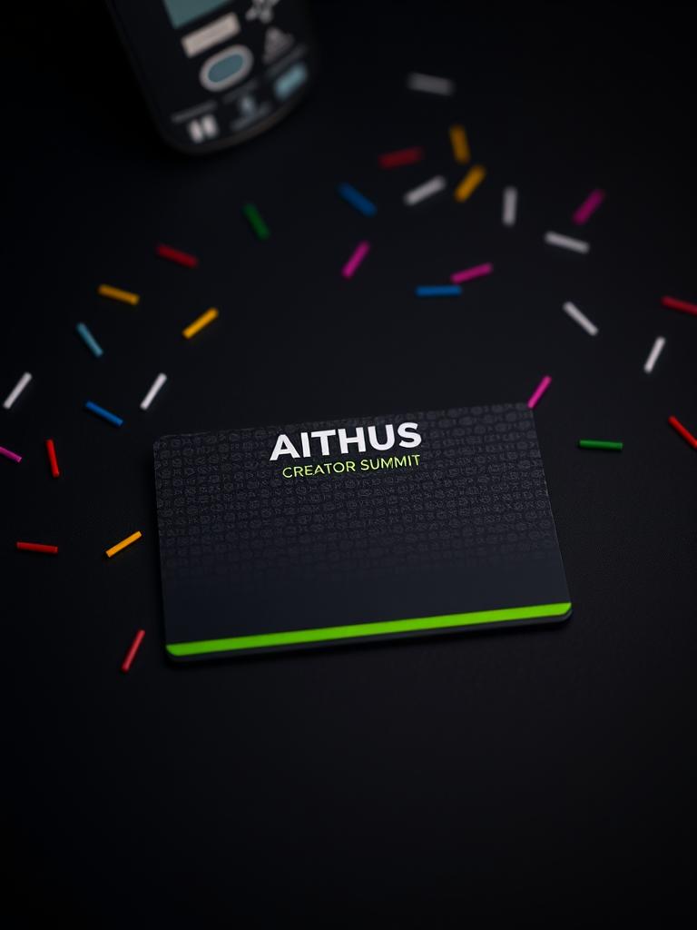 Sistema completo de presença física Aithusa em eventos: sinalização, identificação, welcome kit e palco. A marca ocupa espaço como comando visual, nunca como feira genérica de tecnologia.