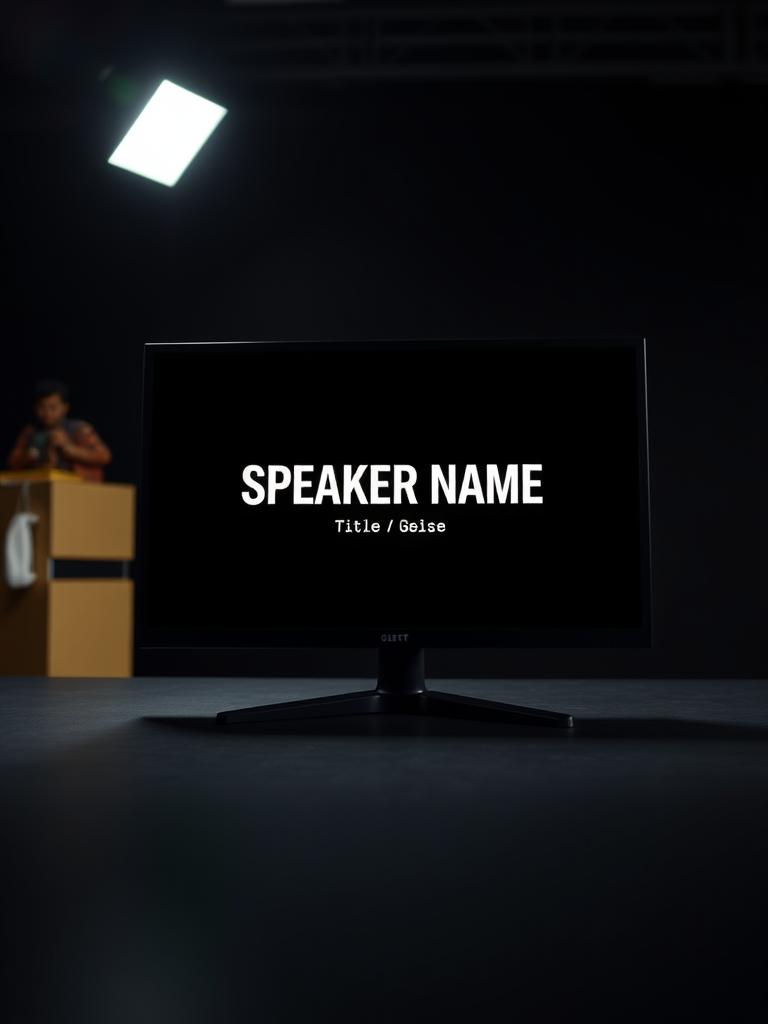 Slide master dark-first e lower thirds animados para transmissão e palco. 1 ideia por frame, contraste máximo, tipografia grande — zero clutter.