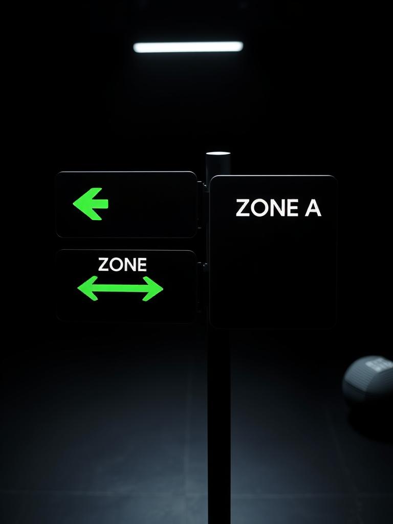 Wayfinding e microcopys mantêm linguagem do sistema. Lime nas setas, obsidian no fundo.